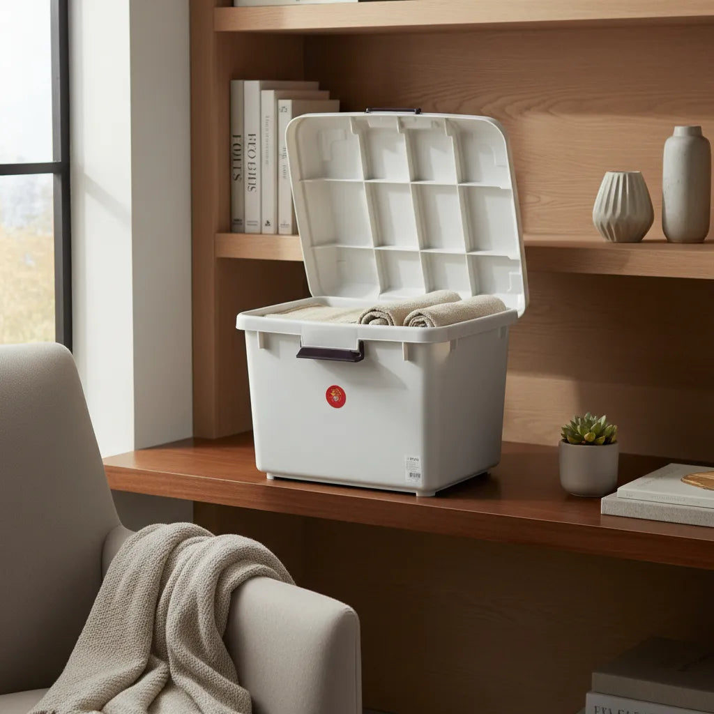 Caja nueva de alta calidad, diseñada para brindar seguridad y practicidad. Cuenta con una grapa de seguridad que permite un cierre firme y confiable, ideal para proteger el contenido durante su almacenamiento o transporte. Tiene una capacidad de 28 litros, lo que la hace perfecta para guardar herramientas, documentos, productos o artículos diversos. Su diseño resistente garantiza durabilidad y un uso prolongado.